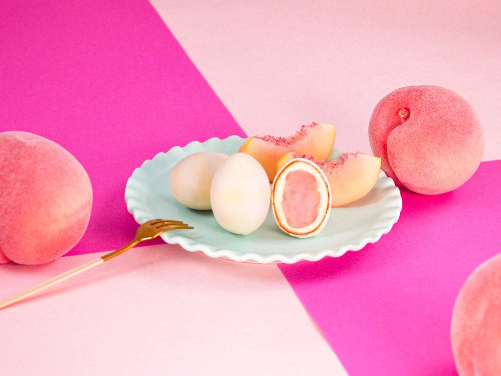 桃のピューレを練り込んだ餡をカステラ生地で包みホワイトチョコでコーティング。可愛いらしい、たまご型のスイーツです。