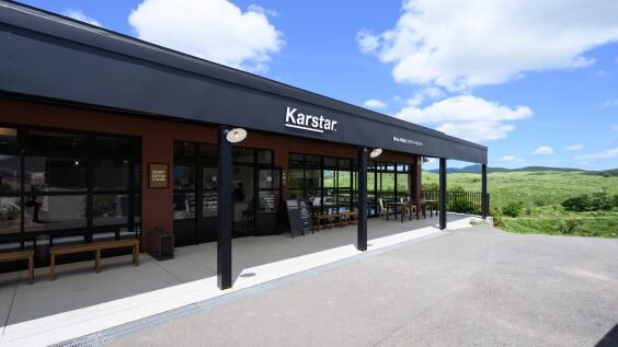 展望台の隣にあるジオパークセンター「Karstar(カルスター)」では秋吉台に関する情報や散策ツアーの申し込みだけでなく、コーヒースタンドや休憩スペースを併設。ガラス張りの施設内から大自然を望めます。