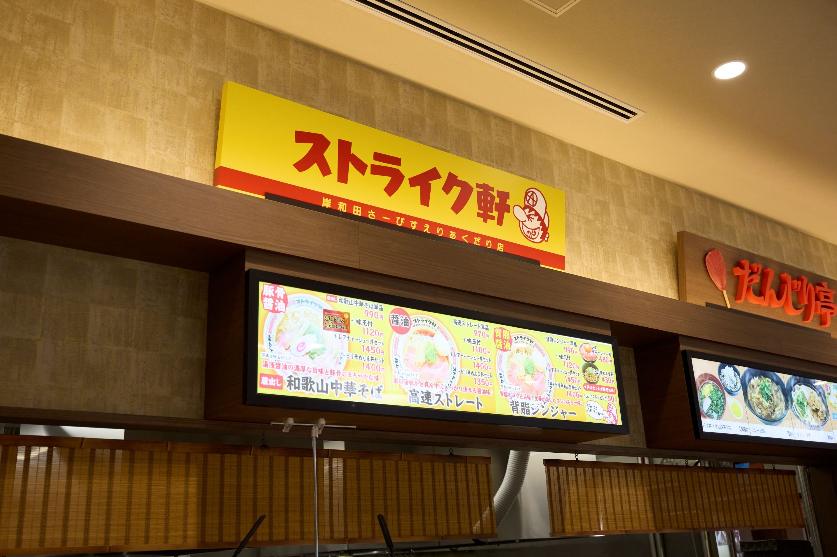 一番の人気メニューは、ここでしか味わえないオリジナルメニュー「蔵出し和歌山中華そば」(¥990)。大阪の人気ラーメン屋で食べログ百名店にも選ばれた「ストライク軒」が監修しています。和歌山県発祥の湯浅醤油を使った豚骨醤油味のスープと細麺が繊細に絡み、濃厚なうまみと豚骨のまろやかさが絶品です。