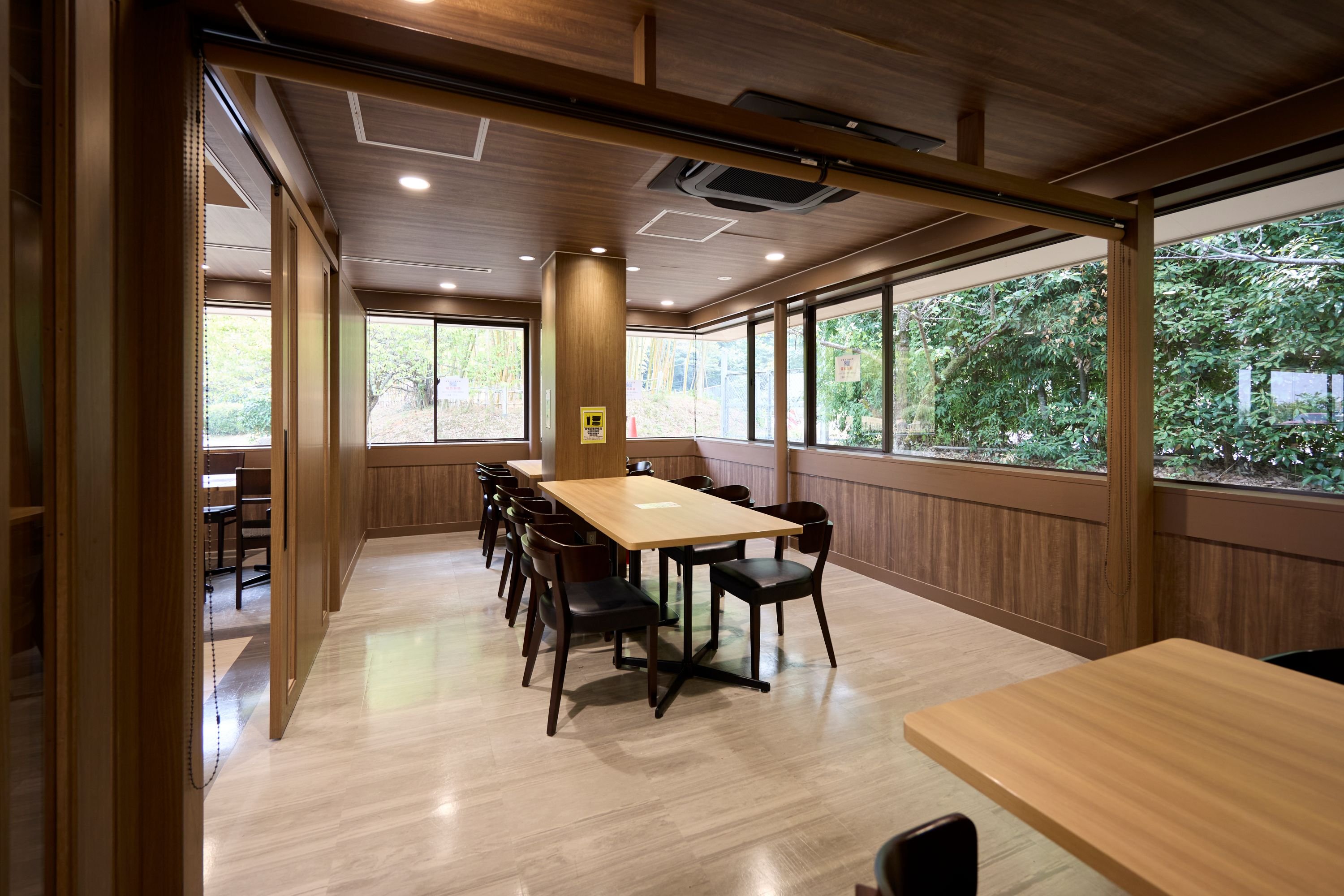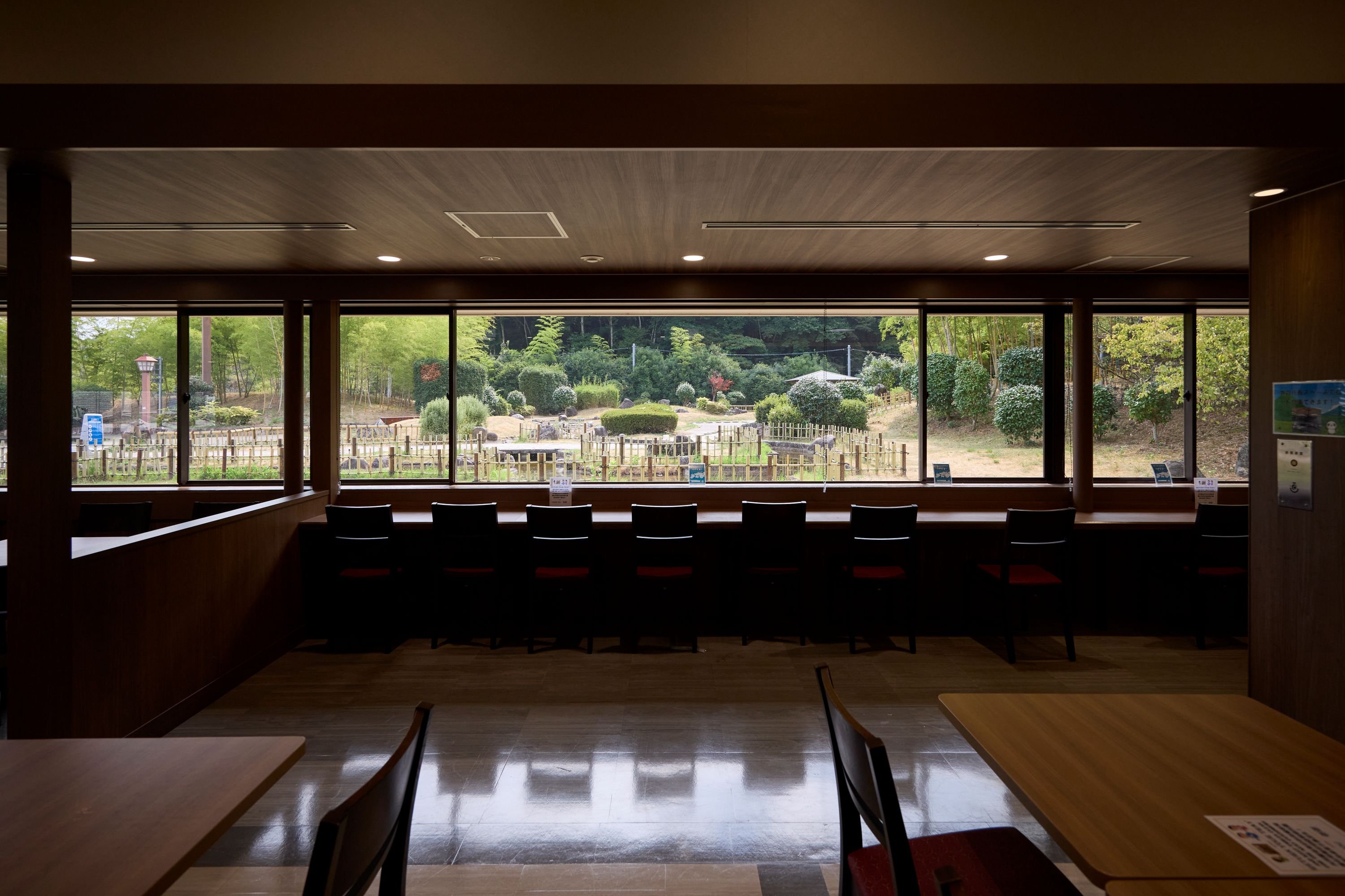 自慢の日本庭園は、フードコートの席からも楽しめます。特にカウンター席からの眺めは格別で、おひとりさまでもゆっくりと庭園を見ながら食事ができるのが魅力。和をモチーフにした内装と相まって、休憩時間がちょっとした贅沢なひとときに変わります。