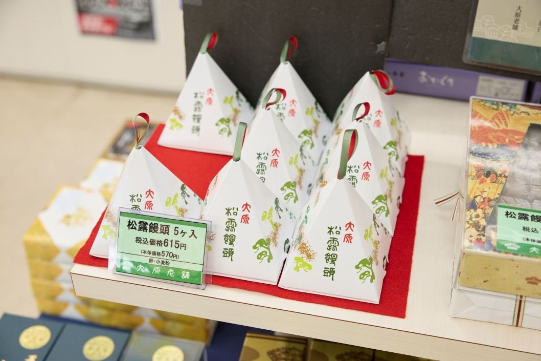 佐賀県の老舗銘菓である「大原松露饅頭」(5個入¥615)は、ひとつひとつ丁寧に手作りで焼き上げられた丸い焼き饅頭です。カステラ生地の中に、北海道産小豆のなめらかなこし餡がぎゅっと詰まっています。あっさりとした甘さで、幅広い世代に愛される逸品です。