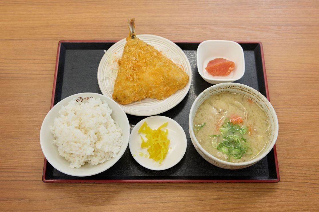 ぜひ味わいたいのが「豚汁・アジフライ定食」(¥930)。サクサクに揚げられた新鮮なアジフライと、ほっこり体が温まる手作り豚汁の組み合わせは、旅の疲れを癒やしてくれる優しい逸品です。