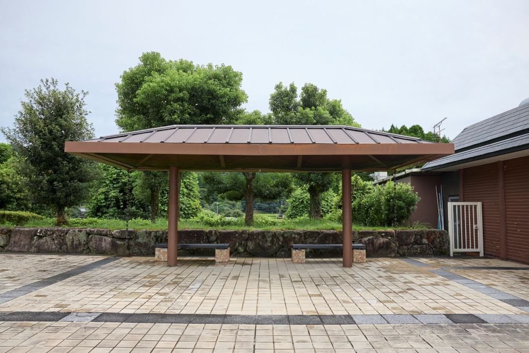 入口通路沿いの高台はちょっとした展望スポット。ぐるりと広がる山の景色を眺めながらリフレッシュできます。また、自動販売機や多久山笠がデザインされた記念スタンプは、ショッピングコーナーが閉まった後でも24時間ご利用いただけます。