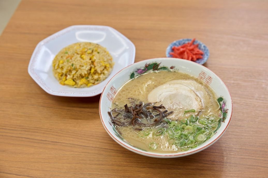 特におすすめなのが、「とんこつラーメン・ミニチャーハンセット」(¥1,080)。香り豊かなチャーハンがセットで楽しめる贅沢な一品です。食べやすいボリューム感でしっかりお腹を満たし、旅の疲れを吹き飛ばしてくれます。