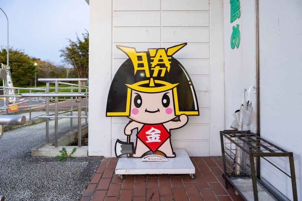 勝央町のマスコットキャラクターきんとくんがお出迎え!