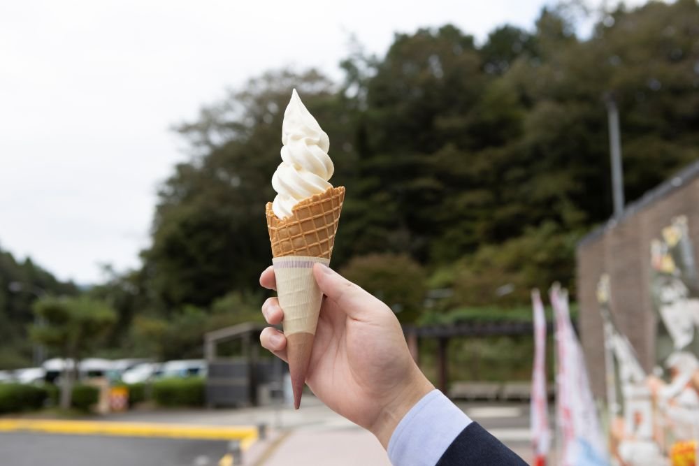 No.1のジェラートを決めるワールドツアーの日本大会Gelato World Tour Japan 2019 横浜で第3位を受賞した実績のある、酪農家が営む“ジェラート醍醐桜”が手掛ける「ジャージー牛乳ソフトクリーム」(¥420)を販売中!口に入れるとミルクの甘みが広がります。なんと1.5倍のソフトクリームが乗ったメガ盛りジャージソフトも!