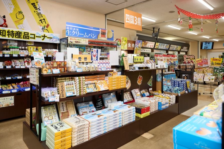 高知県のお土産はもちろんのこと、高松・松山方面からのお客さまもご利用されることから、四国4県すべての商品を網羅しています 。帰り際に他県のお土産を買い忘れたことに気づいた際でも、ここに来れば一通り揃えることが可能なため、多くの旅行者に頼りにされています 。