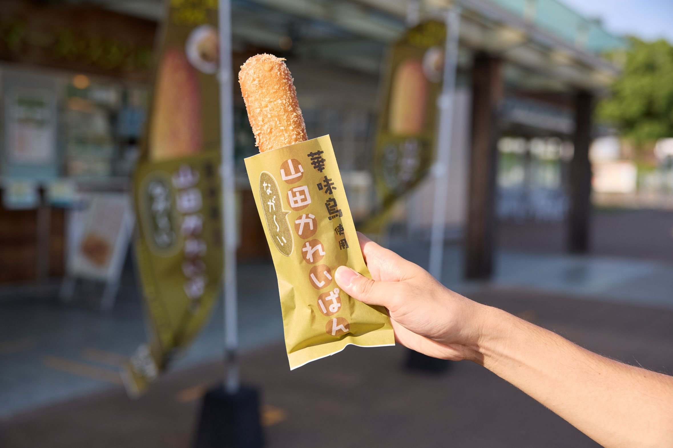 細長い形がユニークな、山田SA(下り線)限定のカレーパン。車内での休憩中など小腹が空いたときや軽食にぴったりです。片手で食べることができ、カレーがこぼれにくいので、最後まできれいに食べられるのも嬉しいポイント。
