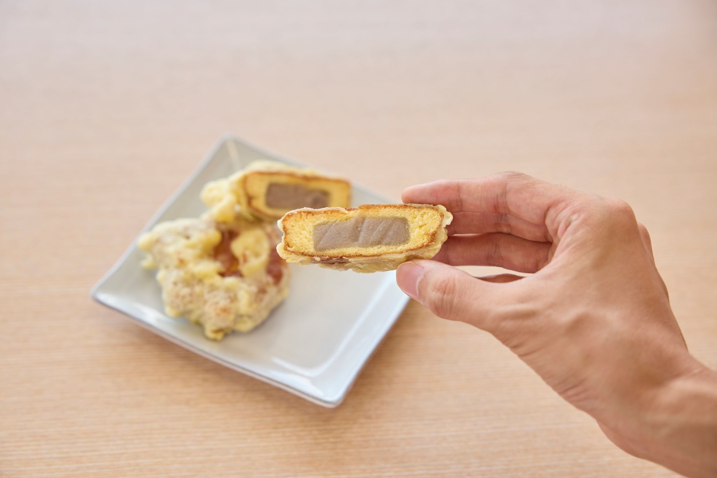 広島県の名物として愛される大人気のお土産・もみじ饅頭。そのもみじ饅頭に衣をまとわせ、香ばしく揚げました。お馴染みの味に新しい楽しみ方を加えた、注目の一品です。