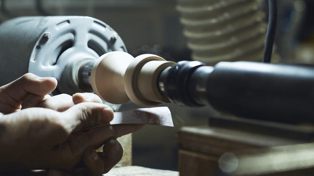 けん玉づくりを始める前は、材料を丸く美しい形状に仕上げるろくろ加工や、書道用の筆づくりを得意としていたイワタ木工。そうした中で培った高精度な加工技術と、繊細な塗装のノウハウを活かし、世界トップレベルの美しいけん玉を完成させるに至りました。