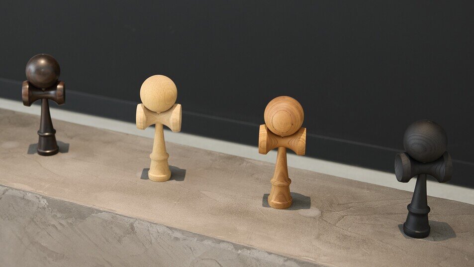 子どもたちに楽しんでもらいたいという想いから始まったけん玉づくりですが、つくるからには、人々により長く愛されるけん玉をつくりたいと思うように。遊んだ後におもちゃ箱にしまわれるのではなく、飾って眺めたくなるようなけん玉を作ろうと試行錯誤を重ねました。