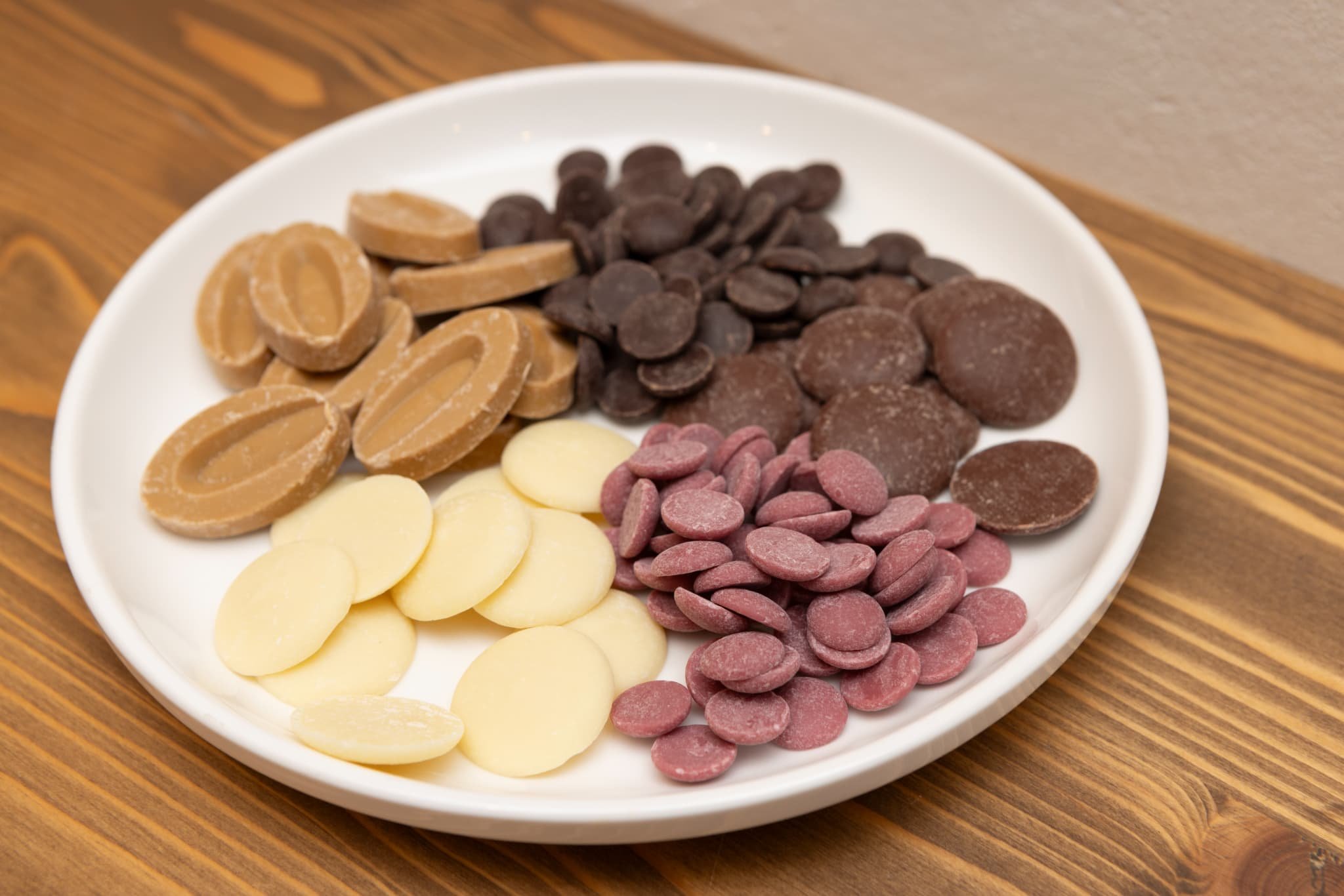 定番のダーク、ミルク、ホワイトのほか、ホワイトチョコレートが焦げたことで偶然生まれたヴァローナ社の第4のチョコレートと呼ばれるブロンドチョコレートなど、さまざまな味を楽しむことができます。