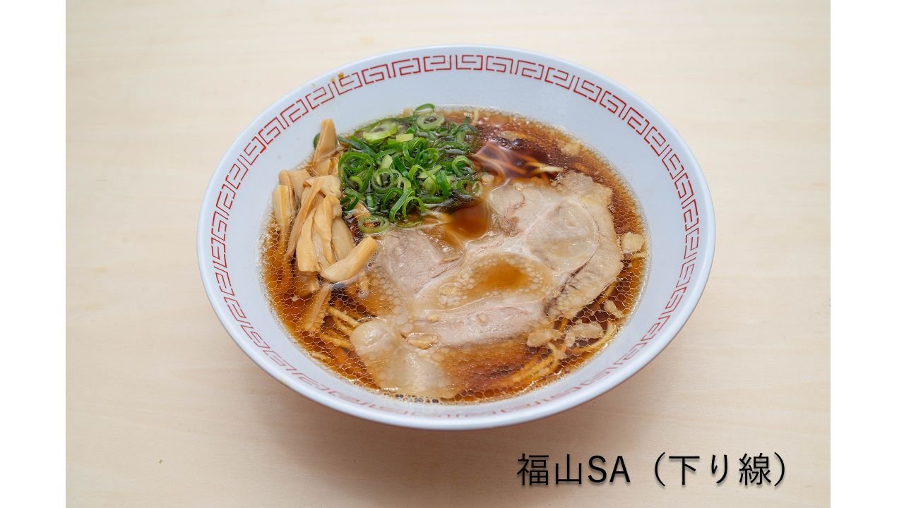 中でも人気は尾道ラーメン。福山SA(上下線)や安佐SA(上下線)など、広島県内の複数のSA・PAで楽しめます。背脂ミンチが浮かぶ醤油ベースのスープが特徴で、重すぎずコクのある味わいが魅力です。