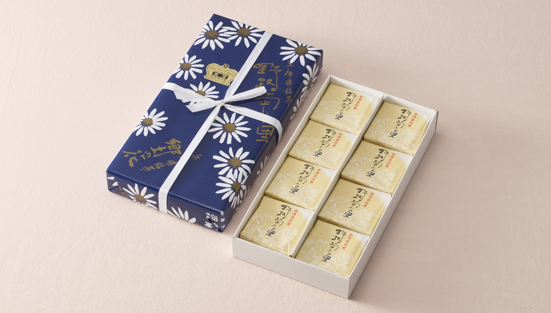 のじぎくが描かれた品のあるパッケージで、手土産に喜ばれること間違いなし!日本茶はもちろん、コーヒーや紅茶と一緒に贈るのもおすすめです。