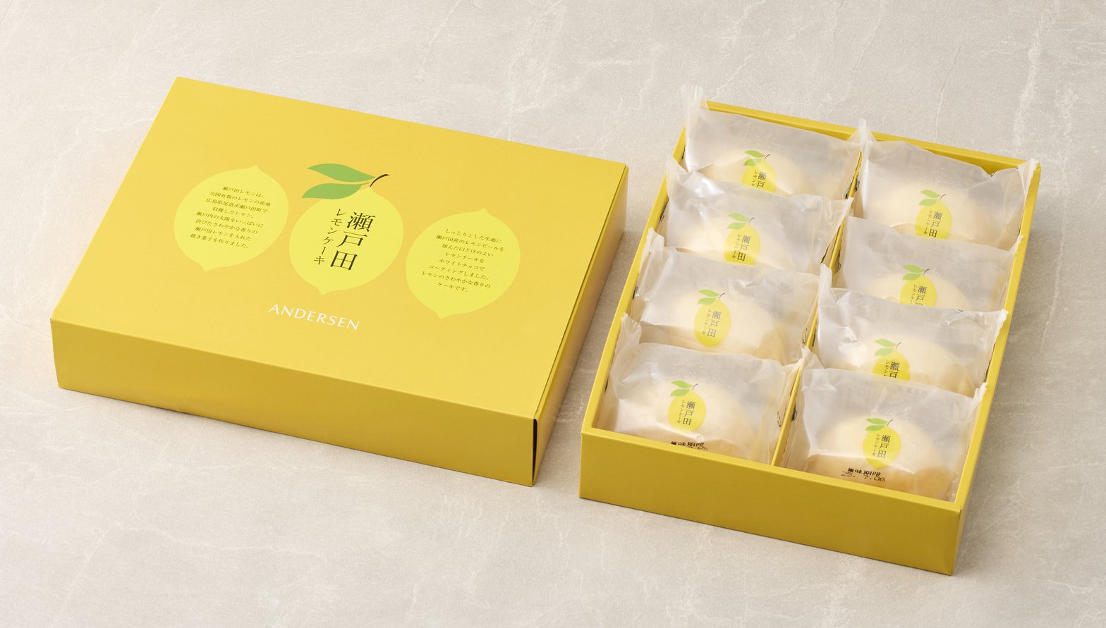 全国有数のレモンの産地・広島県尾道市瀬戸田町で、太陽と海の恵みをたっぷり浴びて育った「瀬戸田レモン」を使用したレモンケーキ。 爽やかな黄色にレモンの夏らしいパッケージは、この季節にぴったりです!