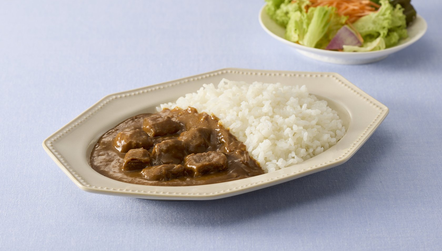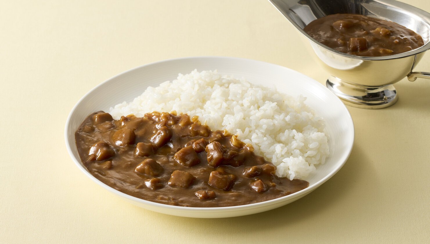 いわさきホテルズ秘伝の「いわさきWAGYUビーフカレー」。ひと口食べれば、自然と笑みがこぼれるリッチなごちそうカレーです。