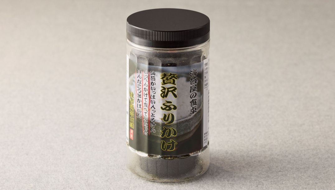 有明海の海苔をふんだんに使用し、秘伝のタレで味付けをした、本格海苔ふりかけ。2015年と2017年の「全国ふりかけグランプリ」で第3位に輝き、全国放送のテレビ番組でも紹介された実績を持つふりかけです。