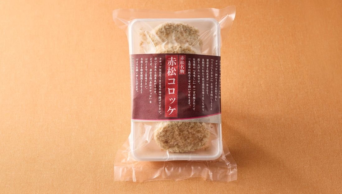 年間18万個の販売実績を誇る、赤松PA(上下線)自慢の看板コロッケ!北海道産の男爵芋に、炒めた玉ねぎと牛肉を煮込んだソースをたっぷり合わせ、スパイシーに仕上げました。サクッとした衣とホクホクのじゃがいもが絶妙にマッチする逸品です。