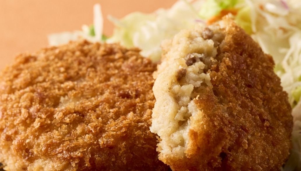 口いっぱいに広がるじゃがいもの甘みと、じっくり煮込まれた牛肉の旨味、さらにピリッとスパイシーな味わいのバランスが絶妙!1個でも満足感たっぷりですが、その美味しさについついもう1個と手を伸ばしたくなる、やみつき必至の絶品コロッケです。