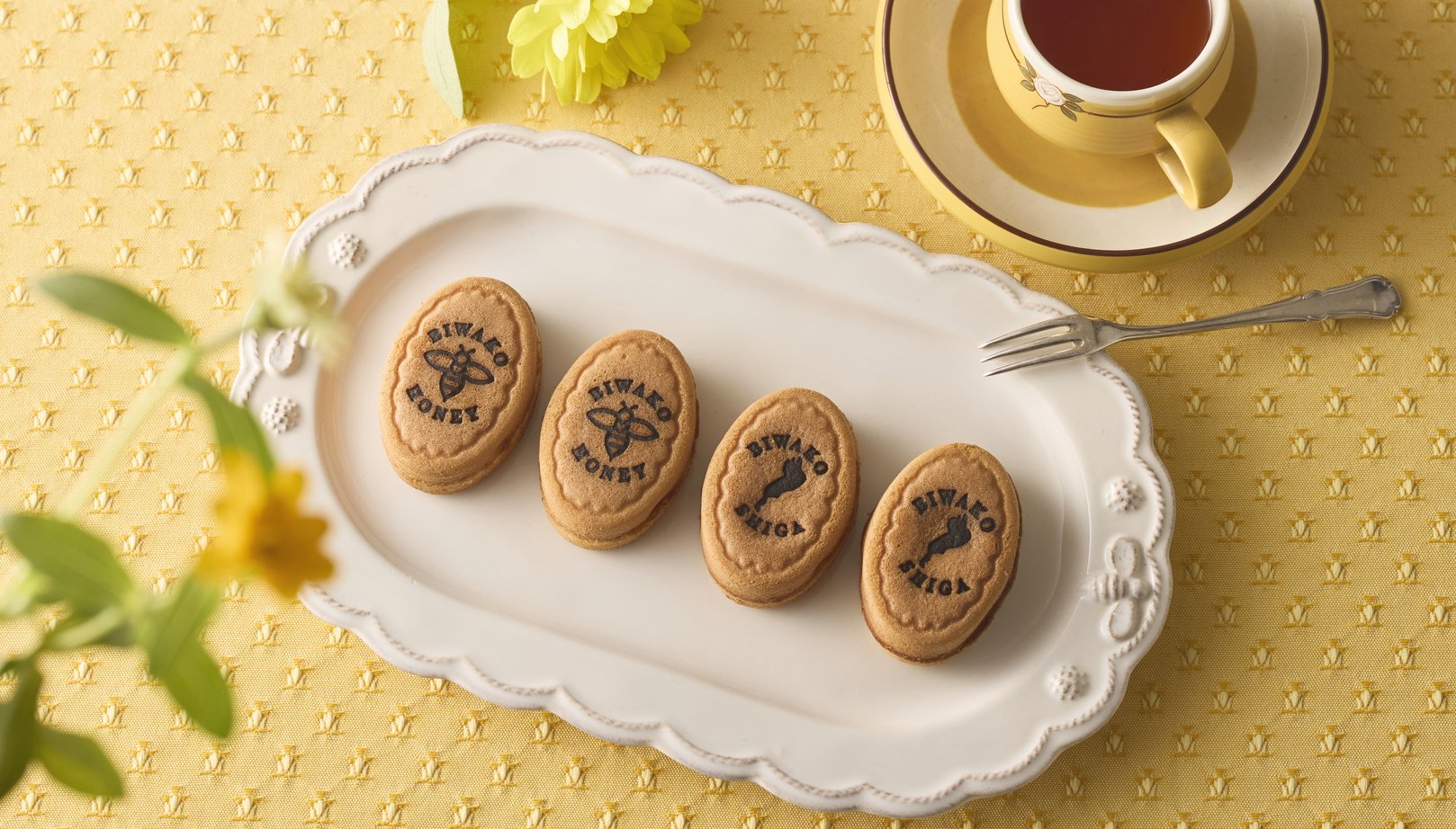 優しい味わいのカスタードクリームと、風味豊かなチョコクリームの2種類(各6個)が入った、嬉しい12個入り。1つ1つにかわいい焼印が入っており、蜂と琵琶湖のイラストがとってもキュートです!
