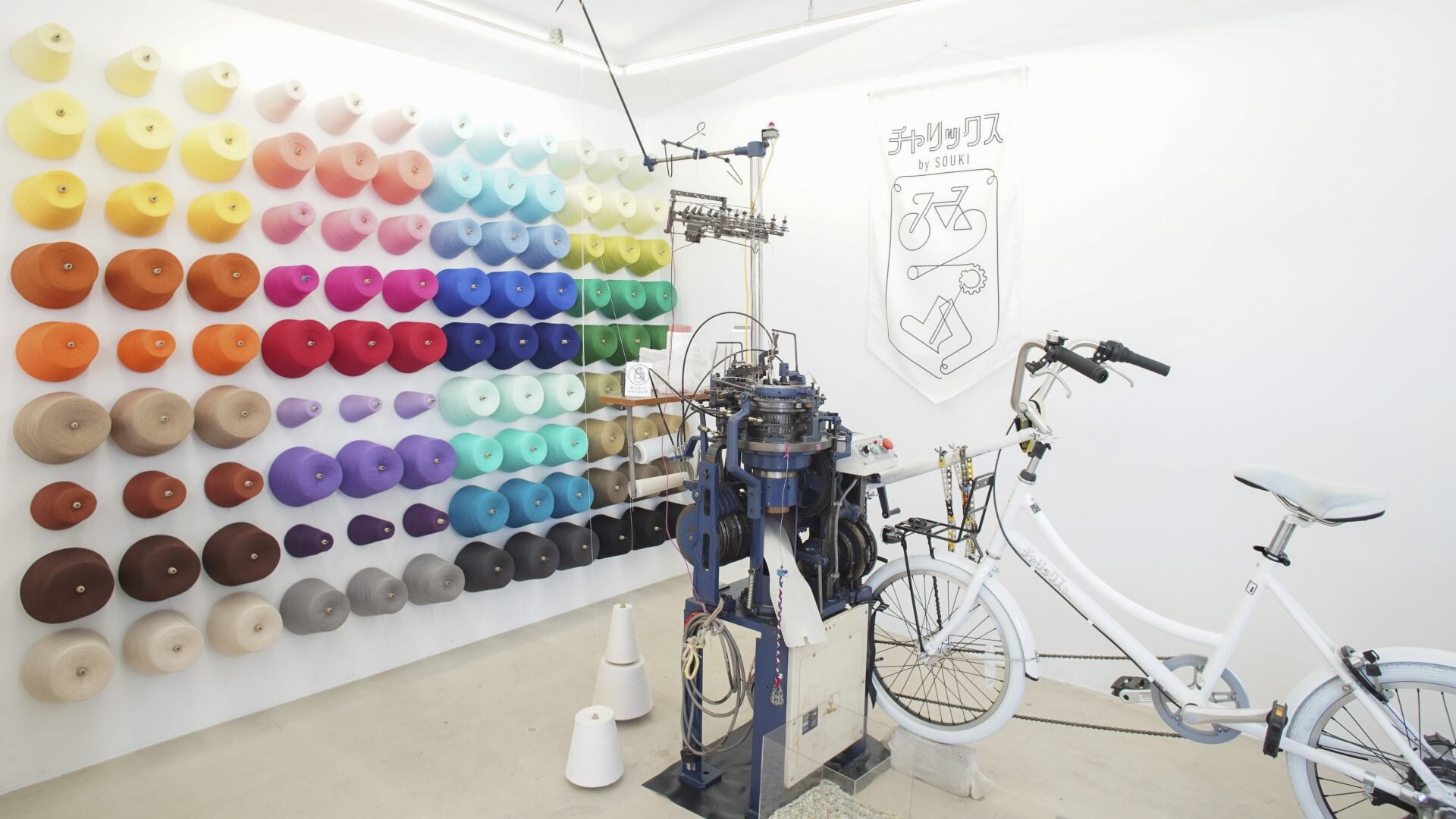 靴下生産を地場産業とする奈良県・広陵町で、2021年にオープンしたソックスファクトリー。手がけるのは、1927(昭和2)年創業で、ローゲージを得意とする地元の靴下工場「SOUKI(創喜)」。多彩なワークショップのなかでも人気は、自転車を漕いで靴下を編む「チャリックス」体験。生成りのシルク糸や、奈良らしい吉野葛の和紙糸に、36色から選べる3色のコットン糸をプラスした、自分だけの色目と風合いの靴下を作ることができます。