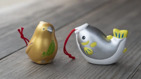 ほかにも、春は桜に彩られる深田池や、朱塗りの鳥居が連なる末社・長山稲荷社など、見どころを巡りながら広大な神域を散策。強運かつ長寿であった神武天皇の御神徳にあやかる各種お守りのほか、神武天皇にゆかりの深い金鵄(きんし)や鮎をモチーフにしたおみくじ(写真)など、多彩な授与品も揃います。
