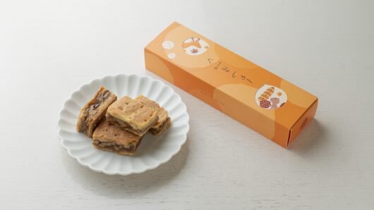 奈良県・法隆寺の人気カフェ「シャンドゥルール」のパティシエの手作りおやつ。バター香るしっとり生地で、やさしい甘さのキャラメルとたっぷりのクルミをサンド。鹿や五重塔を描いたパッケージで奈良土産にぴったりです。