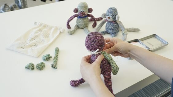 キュートなサルのぬいぐるみを作る「SOUKI MONKEY」では、靴下の製造過程で生まれる端材を有効活用した裁縫にチャレンジ。ほかにも、針を使わずに手軽に体験できる「SOUKI TREE」や、刺繍糸を使って靴下を補修する「ダーニング」など、ワークショップを通してSDGsにも貢献できます。