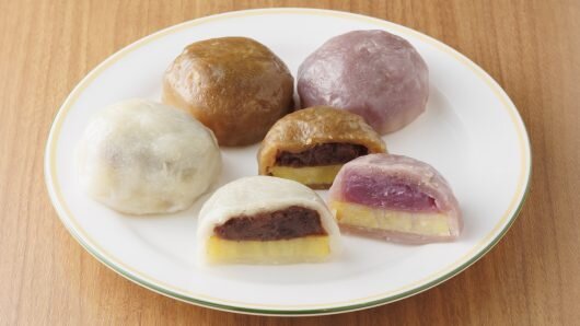 サツマイモとあんを包んだ熊本名物・いきなり団子を熱々の蒸したてで提供!サツマイモは熊本県産の「紅はるか」を使用していて、自然な甘味が感じられます。味は粒あんを使った定番の「白」に加え、「黒糖」「紫芋」の3種類を用意。生地のモチっとした食感がよく、あんの味わいと相性抜群です。