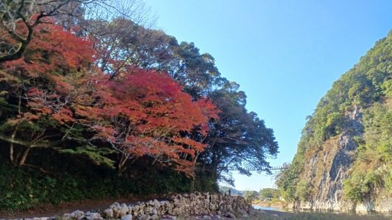 遊歩道沿では綺麗に色付いた紅葉を見ることができます。見ごろは11月中旬〜下旬。立神峡を中心に整備された「立神峡里地公園」で、ハイキングやキャンプなど各種体験も可能。