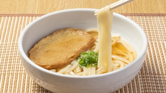 ホタルジャコ(通称:はらんぼ)のすり身を揚げた、愛媛県の郷土料理「じゃこ天」をトッピング。喉越し抜群のうどんに、出汁が香るすっきりとした味わいのつゆがマッチ。じゃこ天の程よい塩味と、心地よい食感がアクセントです。