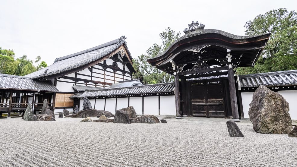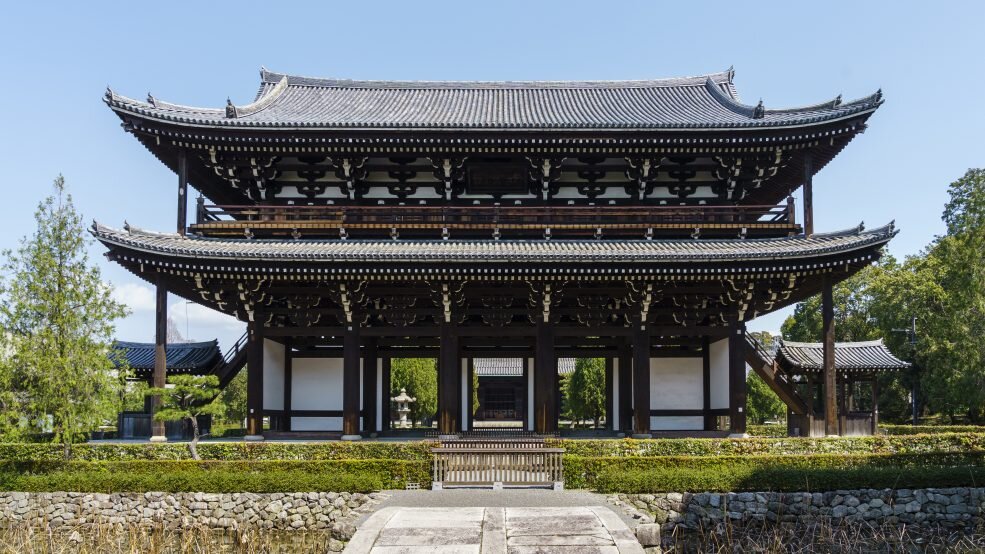 1236(嘉禎2)年に公家・九條家の菩提寺として創建され、19年もの歳月をかけて造営されました。現在は七堂伽藍と25もの塔頭が立ち並ぶ、臨済宗東福寺派の大本山。日本最古と言われる国宝の「三門」(例年、春の特別公開時のみ登楼可能)や、約2,000本もの紅葉が彩る渓谷「洗玉澗」などが有名です。