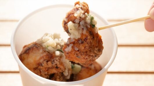 あっさりとした味わいの鶏肉を、カラリとジューシーに揚げて提供。シンプルな塩や醤油味をはじめ、ピリリとしたうま辛、京都の七味を使った七味マヨ、旨味ダレがクセになる味わいのねぎ塩の5つの味がラインナップしています。