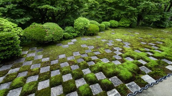 近年注目されるのが国指定名勝の「東福寺本坊庭園」。作庭家・重森三玲が「方丈」の東西南北に作った4つの庭園で、それぞれに異なる世界観が表現されています。特に「北庭」は、苔の緑色と敷石の灰色が織りなす市松模様がかわいいと、若者の間でも話題です。