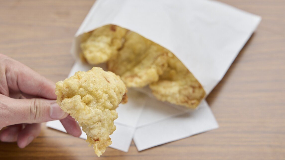 ワンハンドグルメの「とりてん」(¥480)は片手で食べられる手軽さが魅力です。4個入りでシェアもしやすく、小腹満たしにもぴったり。ワンハンドグルメなのにボリュームはたっぷりなので、お腹がすいている時にもぴったりです!