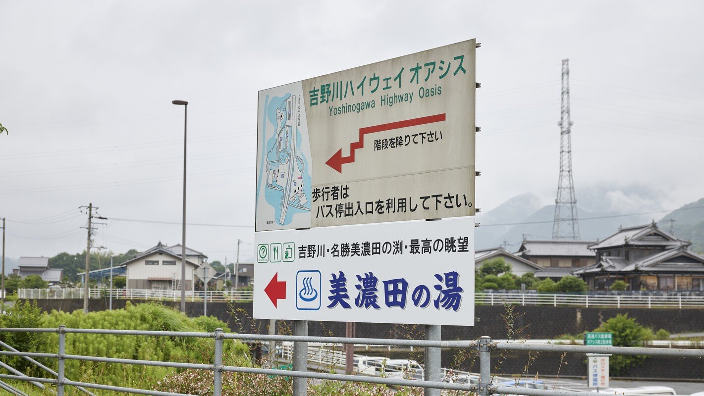 隣接するハイウェイオアシスにはスマートICがあり、徒歩で徳島県の名勝・天然記念物「美濃田の淵」へアクセスが可能!長さ2km、幅100mの深い淵が広がり、四季折々の自然美が楽しめる人気スポットです。