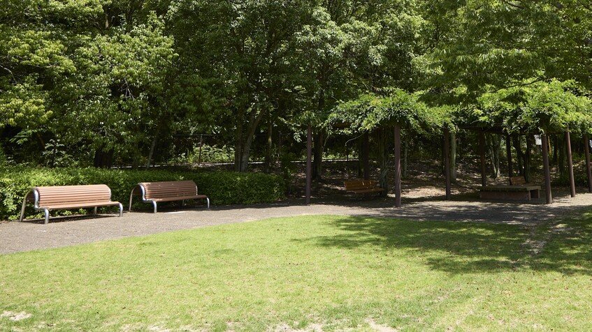 ひろびろとした屋外には、いたるところにベンチが設置されています。晴れた日には、テイクアウトメニューを楽しむのもおすすめです。