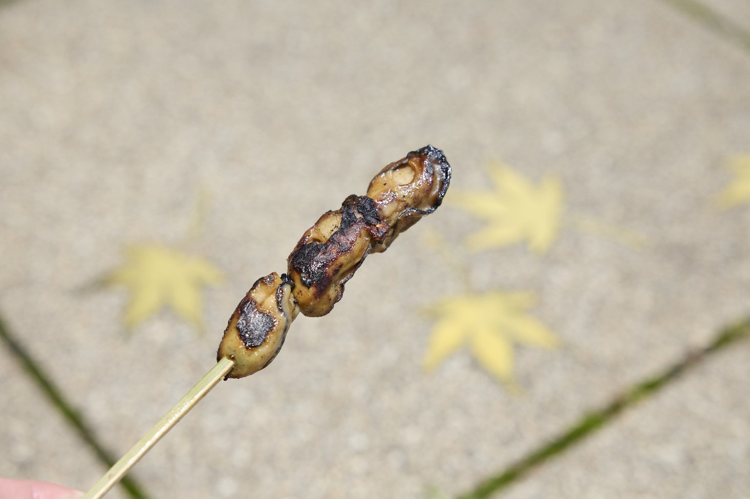 テイクアウトで「牡蠣の串焼き」(¥670(1本3粒))はいかがですか?ぷりっぷりの牡蠣をワンハンドで食べやすく串に刺し、味噌だれをつけて焼き上げました。牡蠣を存分に味わいたい方におすすめの一品です!