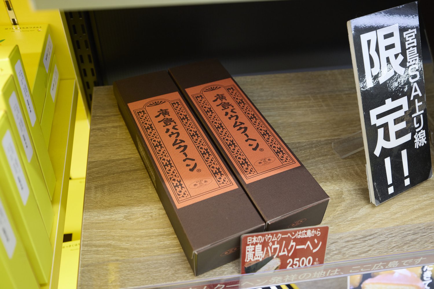 当SAならではのおみやげが「廣島バウムクーヘン」(1個¥2,500)。地元の有名洋菓子店「無花果(いちじく)」の商品です。実は日本におけるバウムクーヘンは、第二次世界大戦時の広島でドイツ兵が焼いたのが発祥だそう。そんな広島ゆかりのお菓子をぜひおひとつ手に取ってみてください。