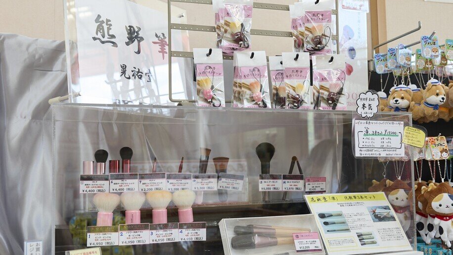 もちろん、食べ物以外のご当地商品も。熊野筆は広島県を代表する民芸品で、特に化粧筆は女性に大人気。柔らかい肌ざわりや毛先のきめ細かさが自慢です。