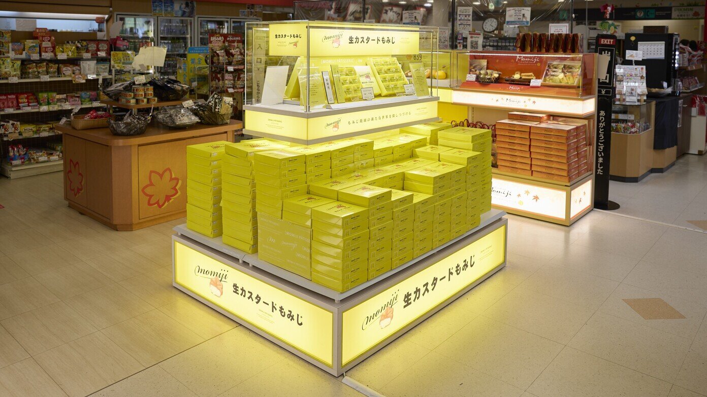 SA・PAでは販売箇所が限られている「生カスタードもみじ」(6個¥ 1,080)。なめらかな“生カスタードのくちどけ”をお楽しみください。もみじ饅頭コーナーではバラ売りも行っており、お好みの味を好きな数だけご購入いただけます。