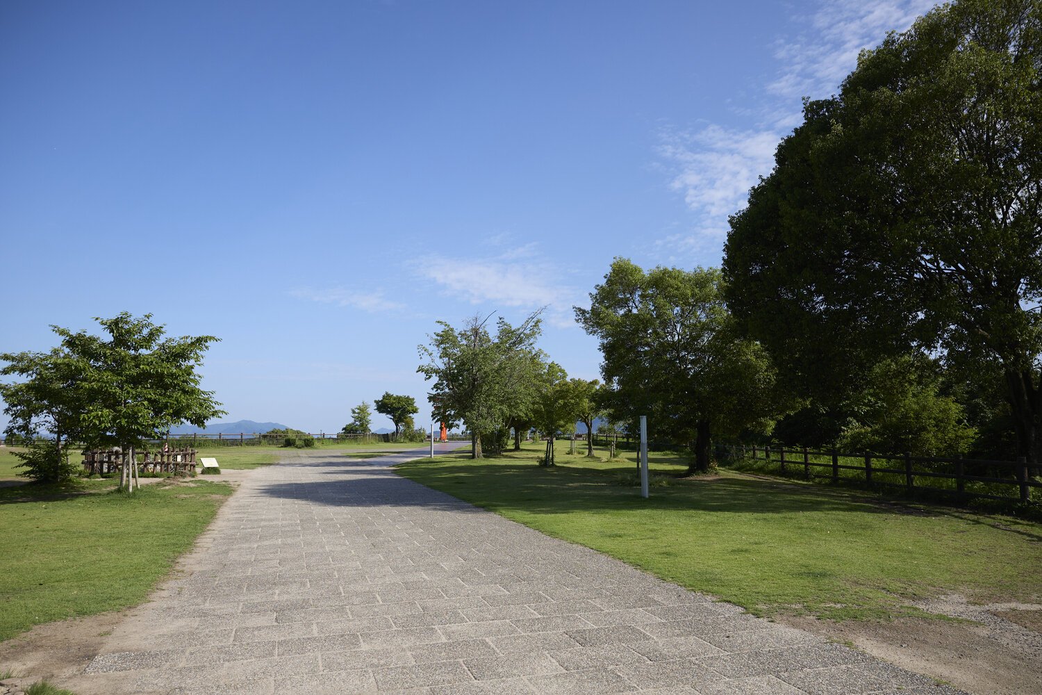 広い園地は地元の人にも人気なエリア。お子さまと遊んだり、景色を眺めたり、ペットと散歩したり。さまざまな楽しみ方があります。