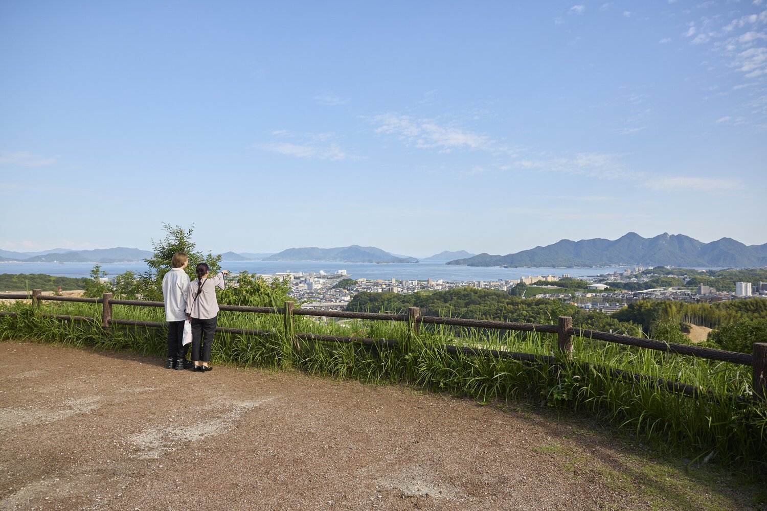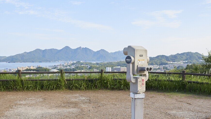 当SAの魅力はなんといってもその美しい景観。見晴らしの良い立地で、屋外からは瀬戸内海に浮かぶ島々を一望できます。望遠鏡を覗けば、宮島も見ることができますよ!