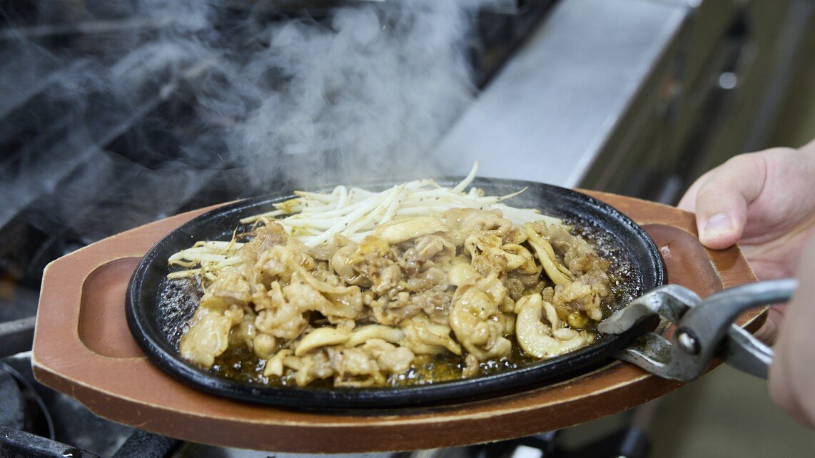 牛・豚・鶏の3種のお肉を一度に楽しめる、まさに一度で三度おいしい贅沢な焼肉定食。香ばしく焼き上げたお肉は、そのまま熱々の鉄板にのって登場!最後のひと口まで熱々のまま楽しめます。