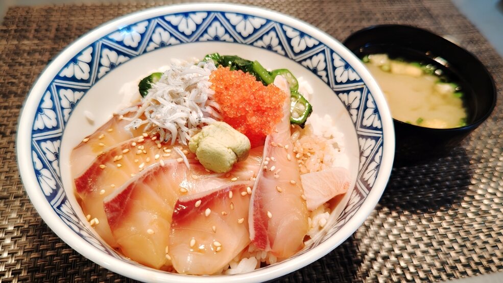 生産量日本一を誇る鹿児島名物のカンパチの刺身を醤油だれに漬け込みました。コリコリとした食感のカンパチをご飯と一緒にどうぞ。