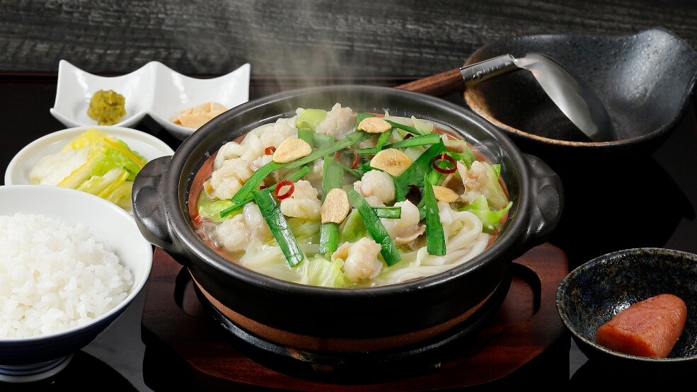あごだしで旨味を引き立てた博多名物「もつ鍋」と自家製うどんをご堪能ください