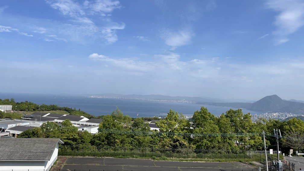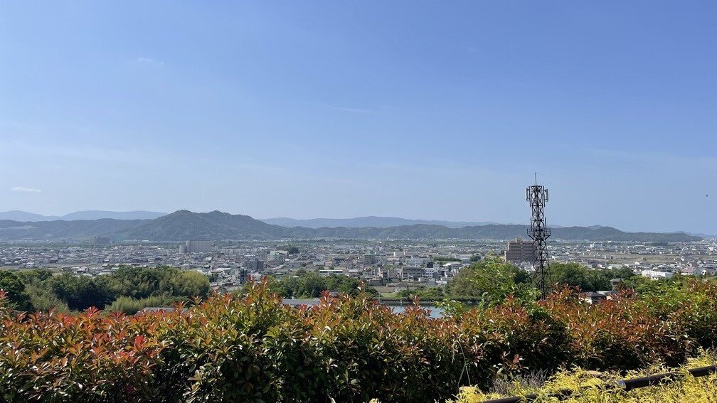 高台に位置し、広がる街並みと晴れた日には海の景色が楽しめます。