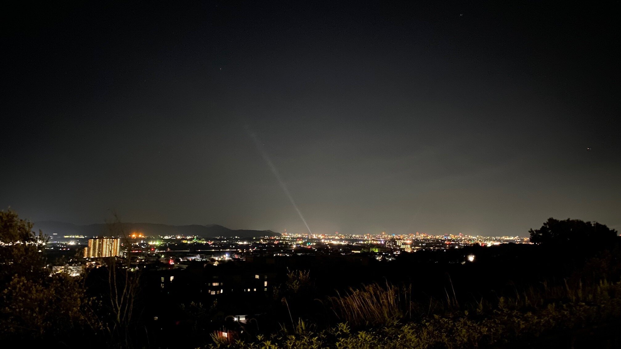 日が沈むと、紀ノ川に沿って広がる和歌山市内の街明かりがきらめき、静けさの中に浮かび上がる幻想的な風景が広がります。