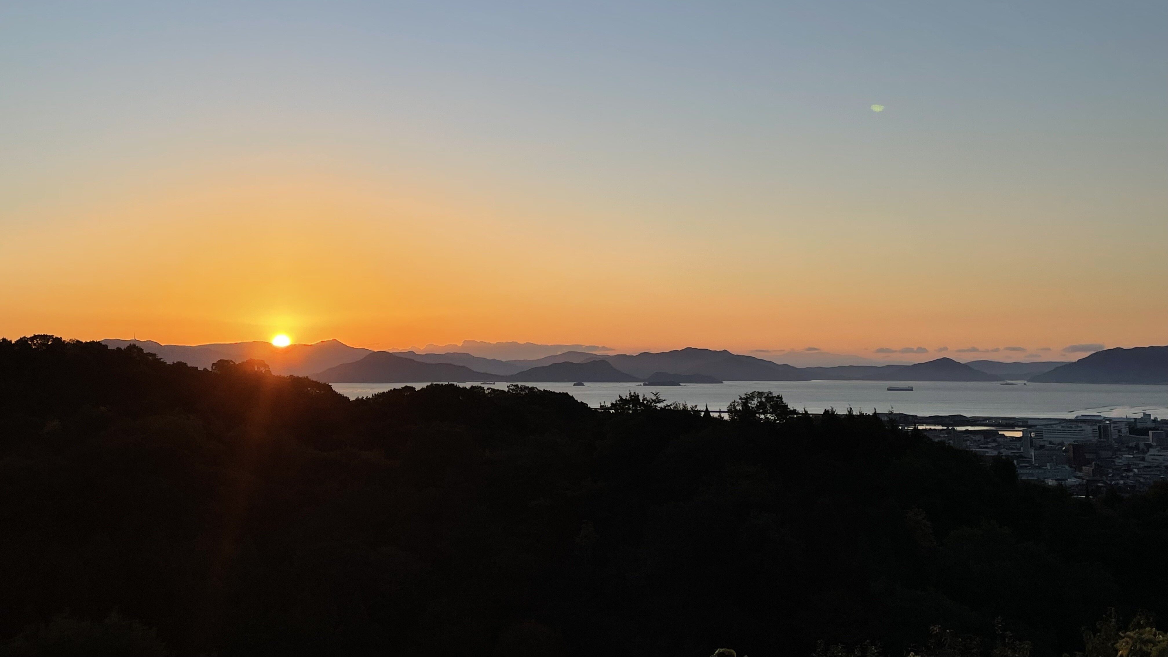 夕暮れ時には、伊予灘に沈む夕日が空と海をオレンジ色に染まり、夜には街の灯りがやさしく輝き、落ち着いた雰囲気の夜景を楽しめます。ドライブの思い出に彩りを添えてくれます。