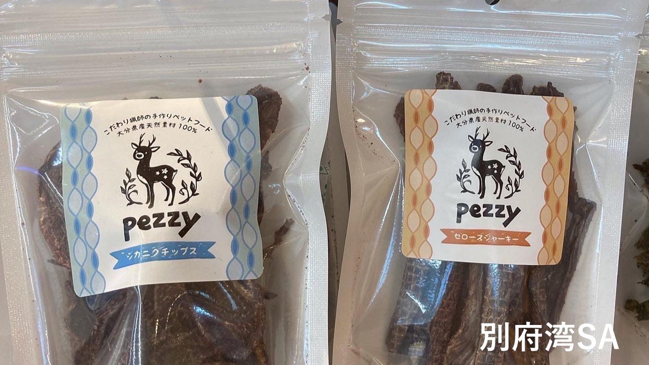 熊本県にある緑川PAでは「馬肉ジャーキー」(¥980)、大分県にある別府湾SAでは大分県産の鹿肉を使用した「シカニクチップス」(¥700)、広島県にある宮島SA(下り線)では「ワンちゃんのお好み焼き」(¥518)など、地元の特産品を活用した商品を販売しています。